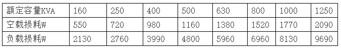干式變壓器技術(shù)參數(shù)有:①頻率50Hz,②空載電琉,要求少于4%,③低壓耐壓強(qiáng)度:2KV/min無(wú)擊穿,④絕緣電阻低壓側(cè)不少于2MΩ,⑤繞組連接方式:/Y/yn0,與D/yn0 ,⑥線(xiàn)圈允許溫升100K,⑦散熱方式:自然風(fēng)冷或溫控風(fēng)冷,⑧噪聲系數(shù)小于30dB。各種容量干式變壓器(SCB型)損耗參數(shù)如表1所示。