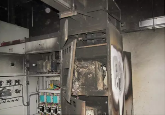 安裝在變電站和小區(qū)配電室內(nèi)的干式變壓器,因環(huán)境封閉,通風(fēng)散熱條件差,容易因設(shè)備過發(fā)生熱火災(zāi)。同時在一個密閉的空間,火災(zāi)發(fā)生后產(chǎn)生的濃煙使柜內(nèi)空氣絕緣水平降低,母線對開關(guān)柜體放電,造成母線相間短路,進而發(fā)展為主變低壓側(cè)開關(guān)跳閘,10kV 母線失壓、干變及開關(guān)柜燒毀的事件。
