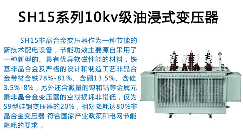 SH15非晶合金油浸式變壓器可用于高層建筑、商業(yè)中心、地鐵、機(jī)場(chǎng)、車(chē)站、工礦企業(yè)和發(fā)電廠,特別適用易燃、易爆和防火要求高的場(chǎng)所。因此,非晶合金變壓器是戶內(nèi)供電網(wǎng)絡(luò)中最理想的節(jié)能型配電設(shè)備.